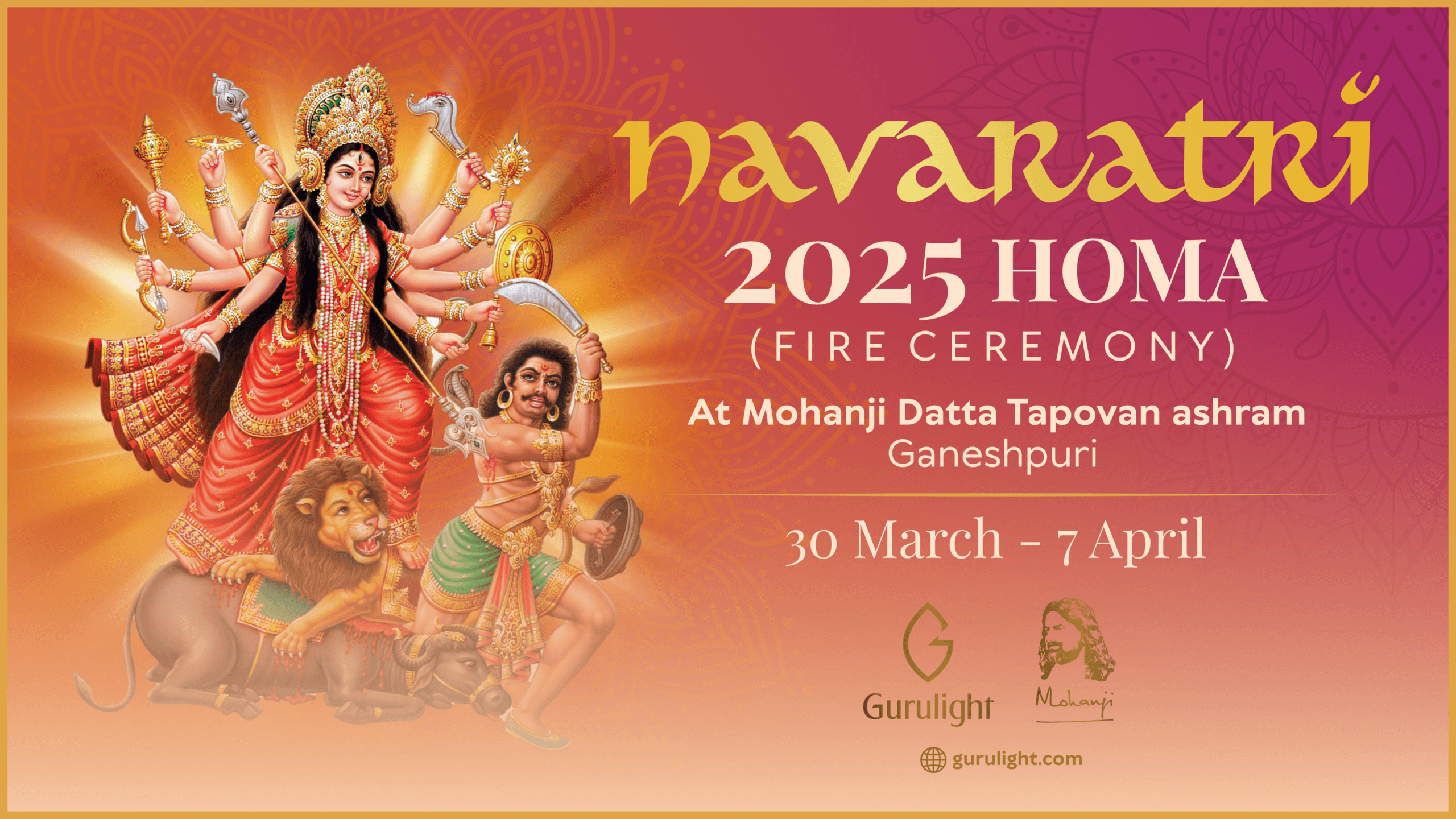 Navaratri (literally the nine nights), a festival dedicated to the Divine Mother, is a very powerful time to effect immense transformation and bring positive change in our lives to give us the strength, composure and conviction to face our struggles head-on. We will connect to the Divine Mother during this auspicious period (30th March to 7th April) and seek her abundant grace in our lives by participating remotely in powerful sacred fire ceremonies conducted in Mohanji Datta Tapovan ashram in Ganeshpuri.